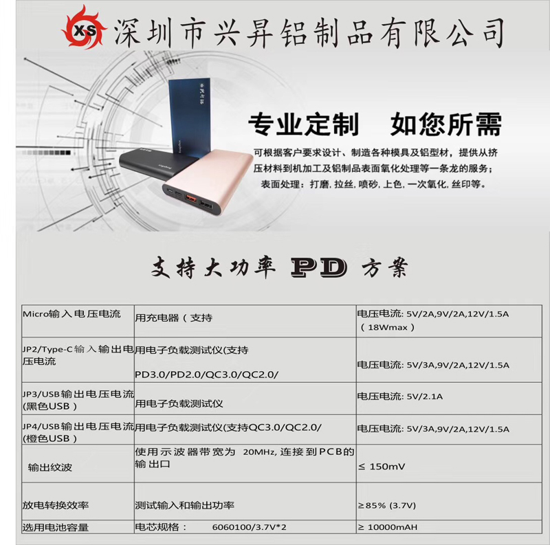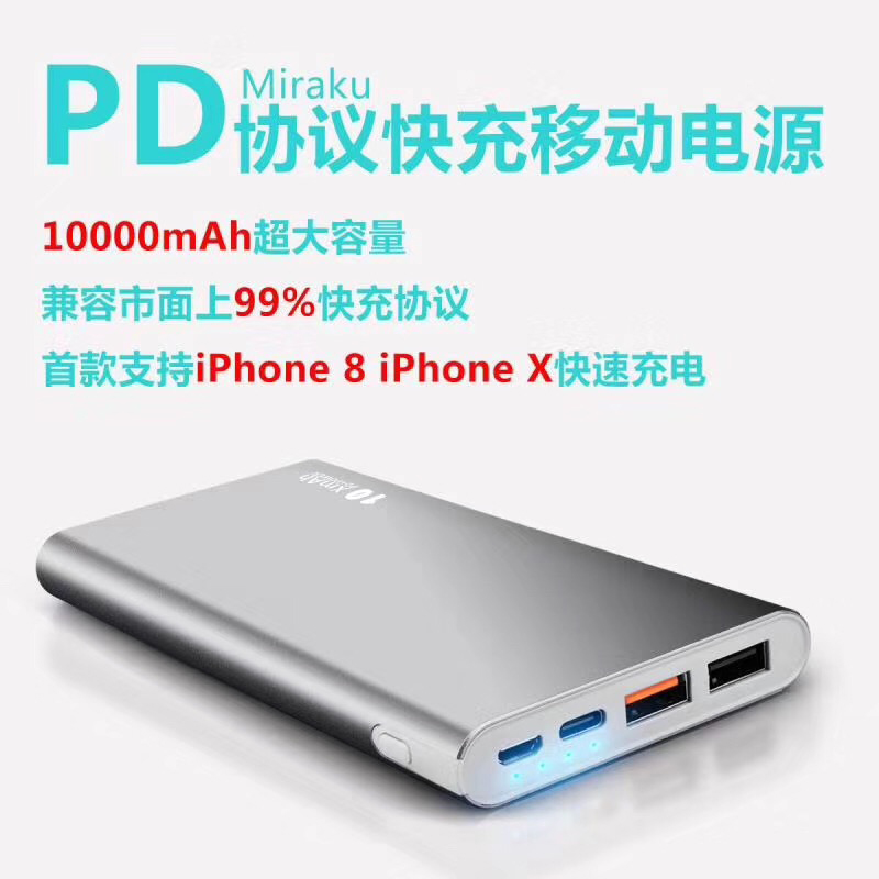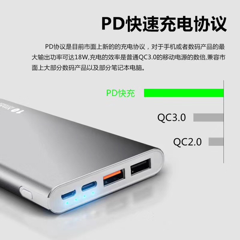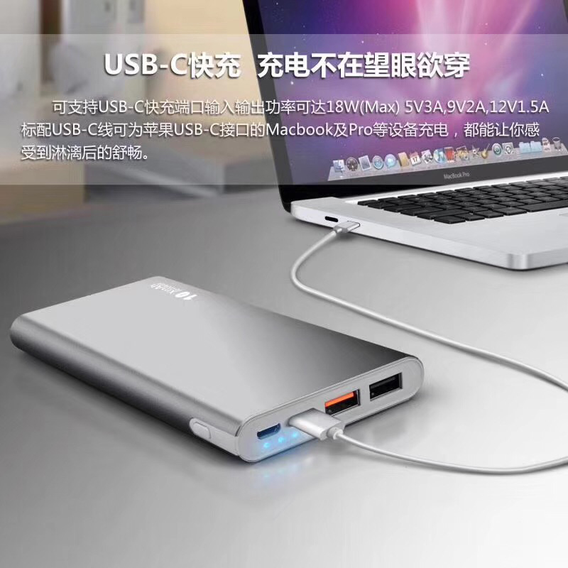 PD快充QC3.0聚合物带LED灯带TYPE-C接口移动电源充电宝铝外壳 聚合物带LED灯移动电源充电宝铝外壳